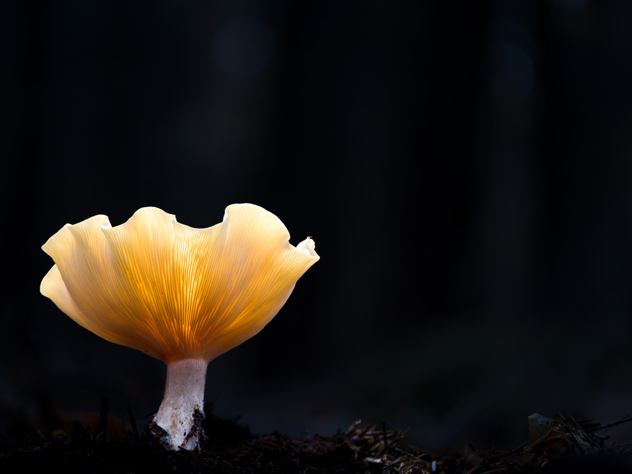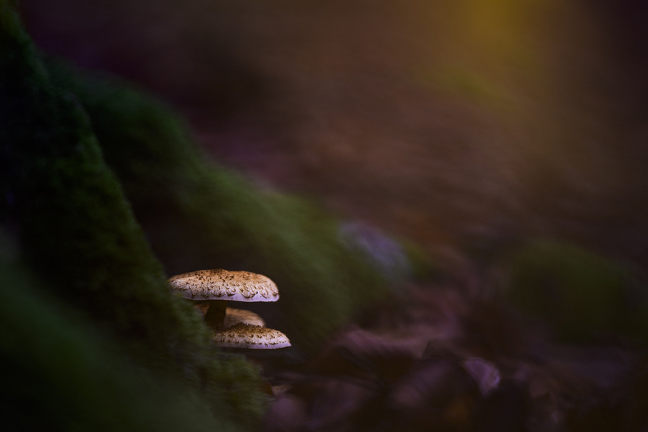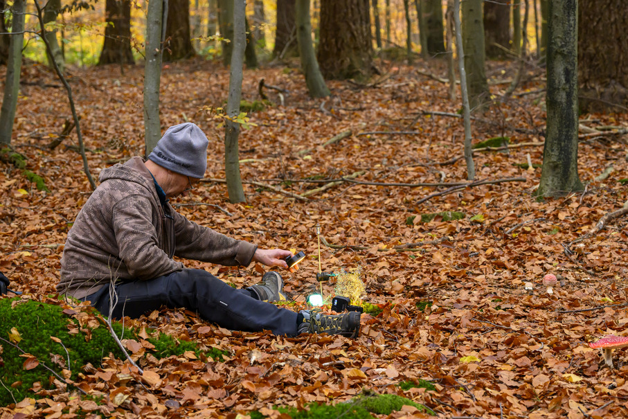 Fotografisch wurde an diesem Tag viel experimentiert. Neben klassischen Makroaufnahmen standen auch Weitwinkel-Perspektiven und kreative Einsätze von zusätzlichen Lichtquellen wie Taschenlampen und LED-Panels auf dem Programm. Das Spiel von natürlichem und künstlichem Licht verlieh den Motiven eine besondere Tiefe und betonte die feuchte, fast mystische Atmosphäre des Steigerwalds im November.