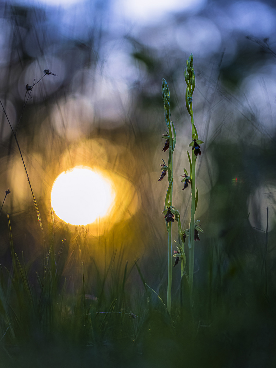 Doch der Tag war noch nicht zu Ende: Spontan fuhr die Gruppe zu den Kalkmagerrasen bei Würzburg, um die heimischen Orchideen in der Abenddämmerung zu fotografieren. Das sanfte Licht des späten Nachmittags und die vielfältigen Blüten boten eine perfekte Kulisse für gelungene Aufnahmen und rundeten den Exkursionstag auf wunderschöne Weise ab.
