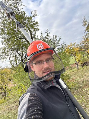 Pflege der Bäume mit Hochentaster und anschließendem Baumschnitt