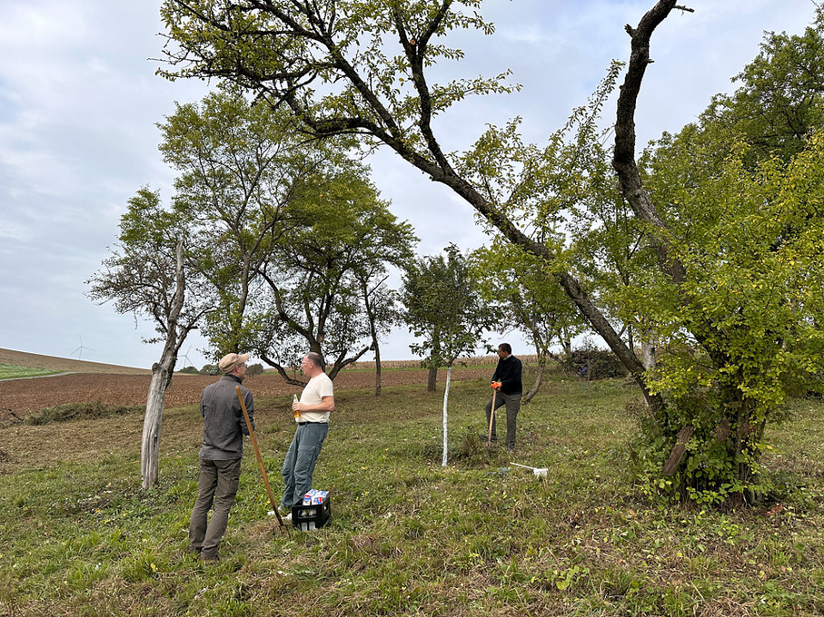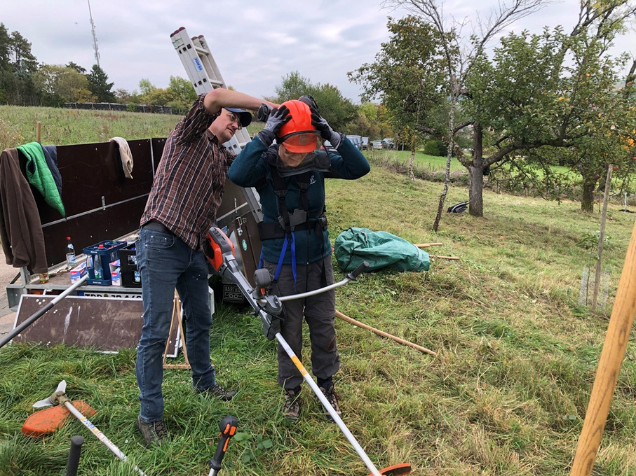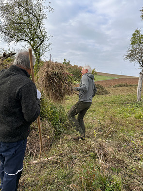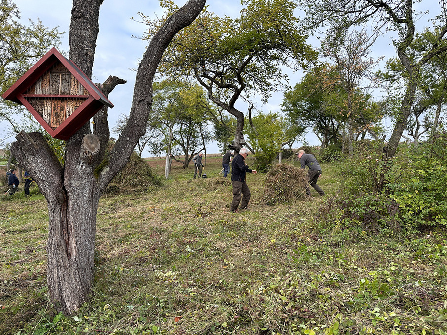 Am Samstag, den 11. Oktober 2025, trafen sich einige Mitglieder unserer GDT-Regionalgruppe Mainfranken gemeinsam mit den engagierten Aktiven des NABU Boxberg zu einem besonderen Arbeitseinsatz im Gelände. Bereits am Vortag war ein kleines, tatkräftiges „Mähteam“ mit Balkenmäher und Motorsensen unterwegs, um die Flächen vorzubereiten – eine wichtige Grundlage für die anstehende Biotoppflege.