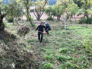 Verarbeiten des Schnittguts zu Benjeshecken