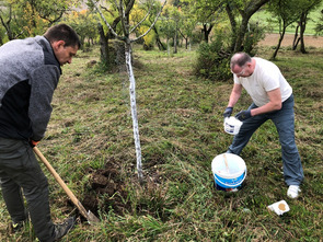 Kalken junger Baumstämme